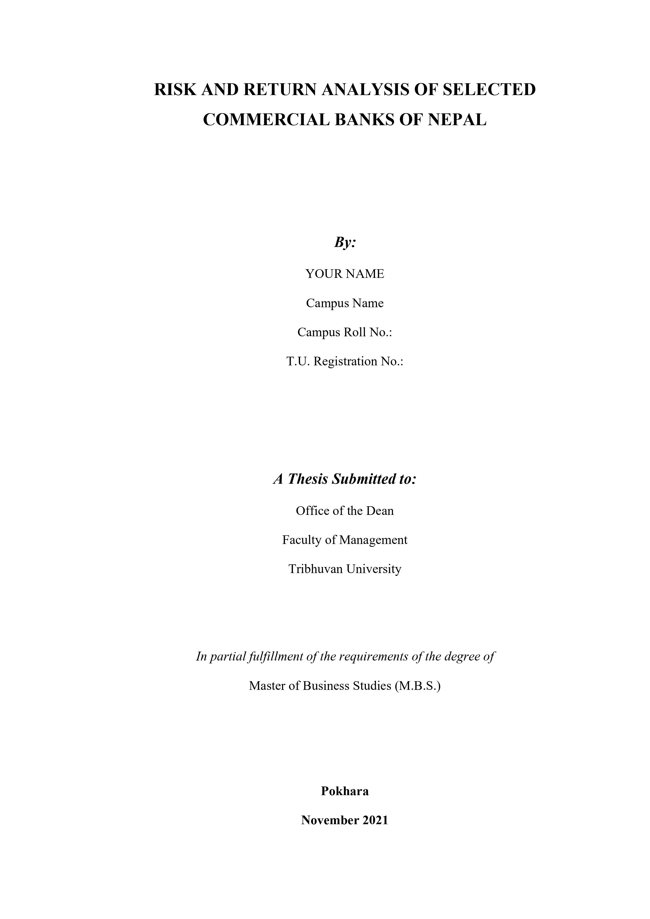 Topic: RISK AND RETURN ANALYSIS OF SELECTED COMMERCIAL BANKS OF NEPAL